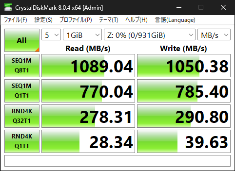 CrystalDiskMark_20221220173100 Published 2022年12月20日 at 482 × 352 in 高速ディスクを気軽に増設する ← Previous Next → 外付けSSDでの速度チェック
