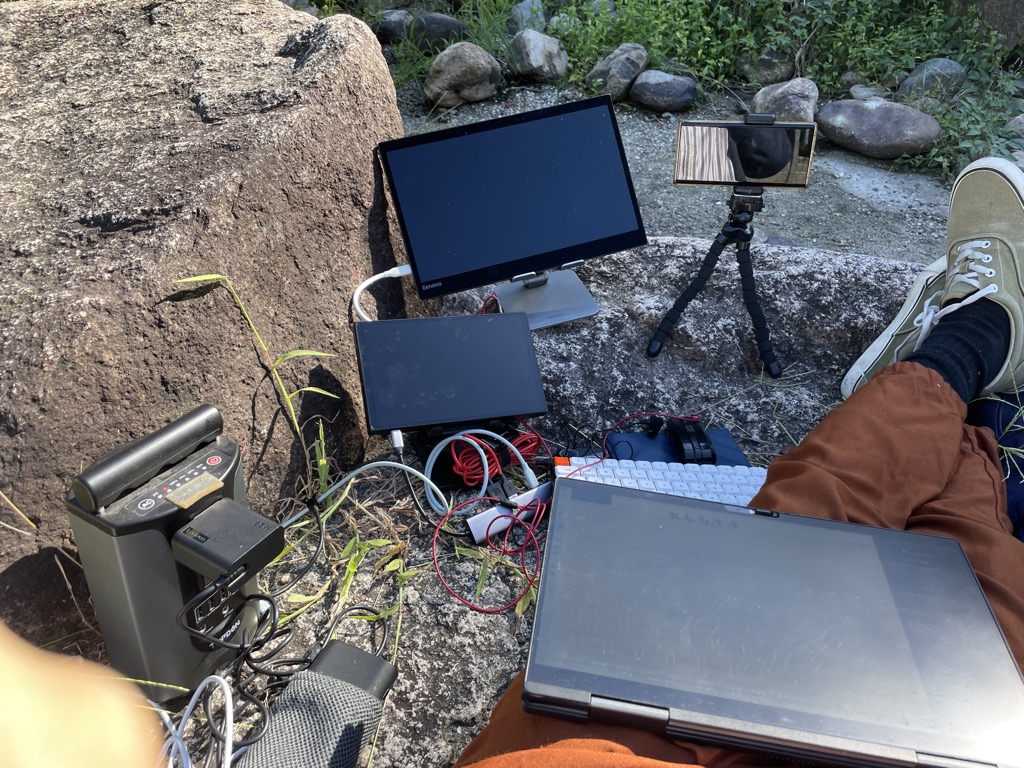 野外でZOOM+YoutubeLive 4時間弱