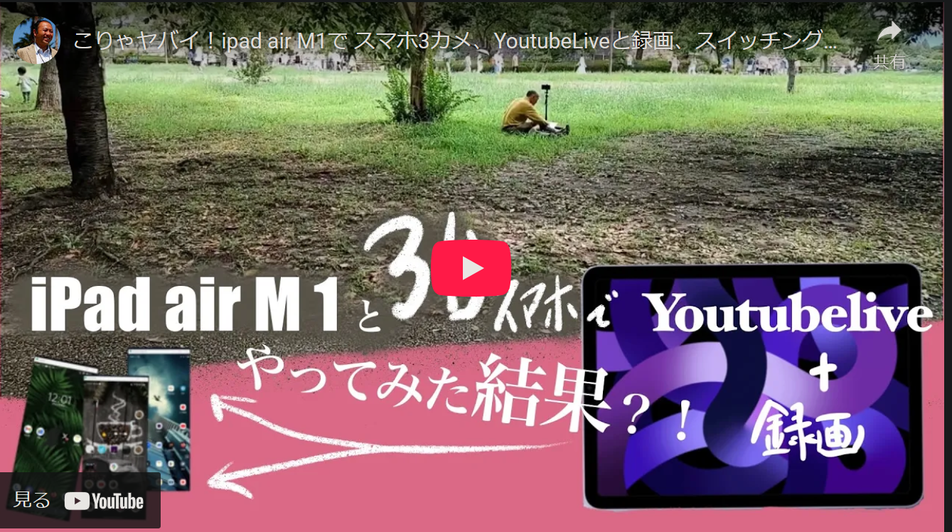 movie こりゃヤバイ!ipad air M1で スマホ3カメ、YoutubeLiveと録画、スイッチングできるのか? Author mishita Date 2025年9月14日 実験してみました。 ほぼ 良い感じ! YoutubeLiveのON/OFFするのに PCは最低限 必要ですね。(^_^)