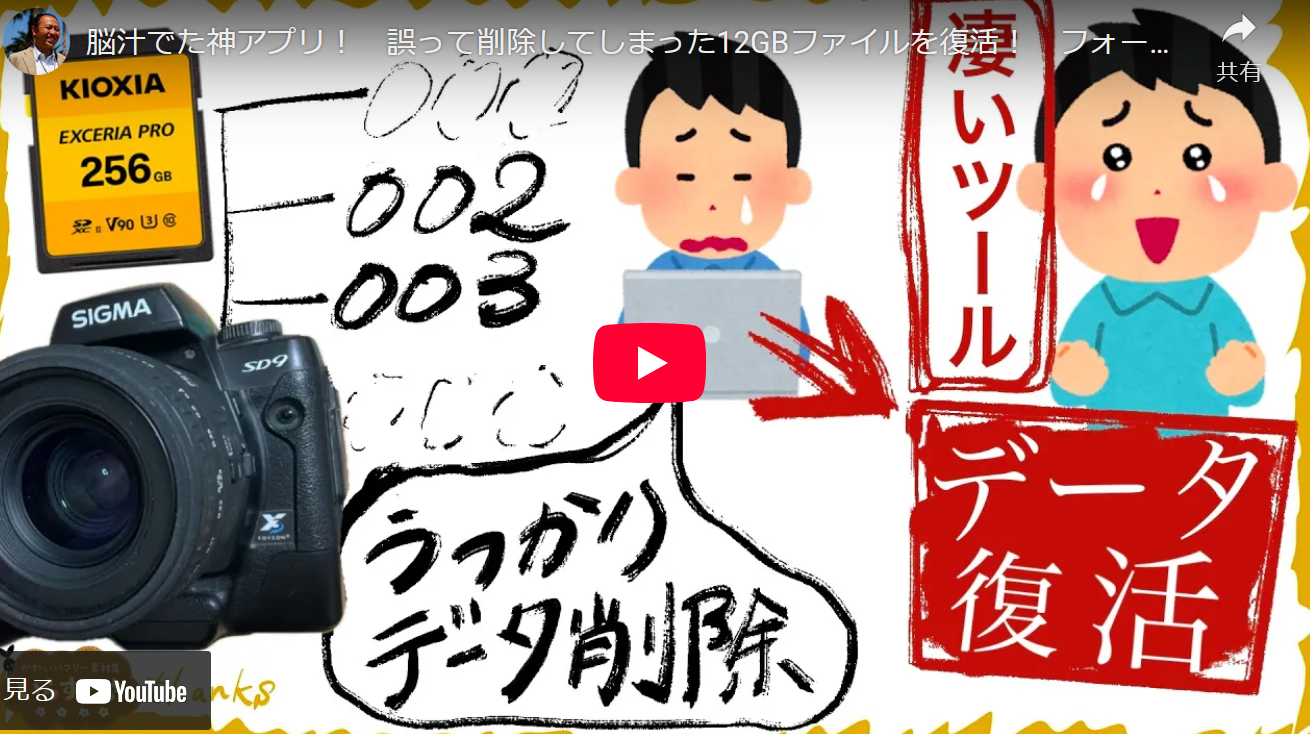 movie 脳汁でた神アプリ! 誤って削除してしまった12GBファイルを復活! フォーマットもOK??!ぜひ備えよう! Author mishita Date 2025年12月12日 #ファイル削除 #復活 #NTFS #FAT32 #無料 #簡単 一家に一台 会社に一台 そんな凄いソフトに出会ってしまいました。 ・USBメモリ復旧 https://forest.watch.impress.co.jp