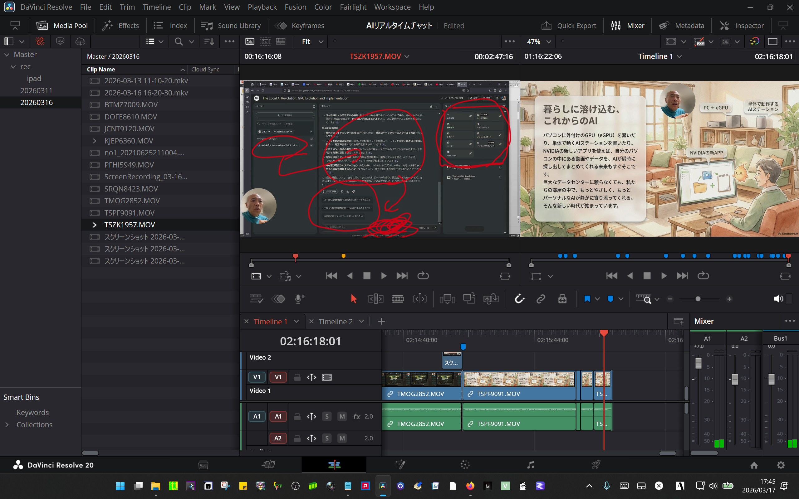 便利なツール、手段 うーーん ほんと良い時代!たった1日で 5カメリアルタイム編集サクサク終了! Author mishita Date 2026年3月20日 合理化が行き着いた?! 一日で メニュー付きブルーレイ出力までも! FHDサイズ動画は全部SSD詰め込み 喫茶店で作業可能 ローカルAI動作する手の平 640gマシンLegionGOでレンダリング出力! 内臓GPU大活躍