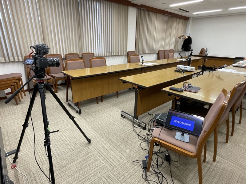 そんな場合に限って、場所がただの会議室だったりするのですが、スピーカー含めた音響設備はまったくゼロ、ネットのジャックがあるとはいえ、分岐させるLANケーブルやHUBなどの設備さえ別途必要になってきます。しかも今回はマイクも1つを2人共有で、計4つと勝手に判断したので、前回よりも大げさになりました。