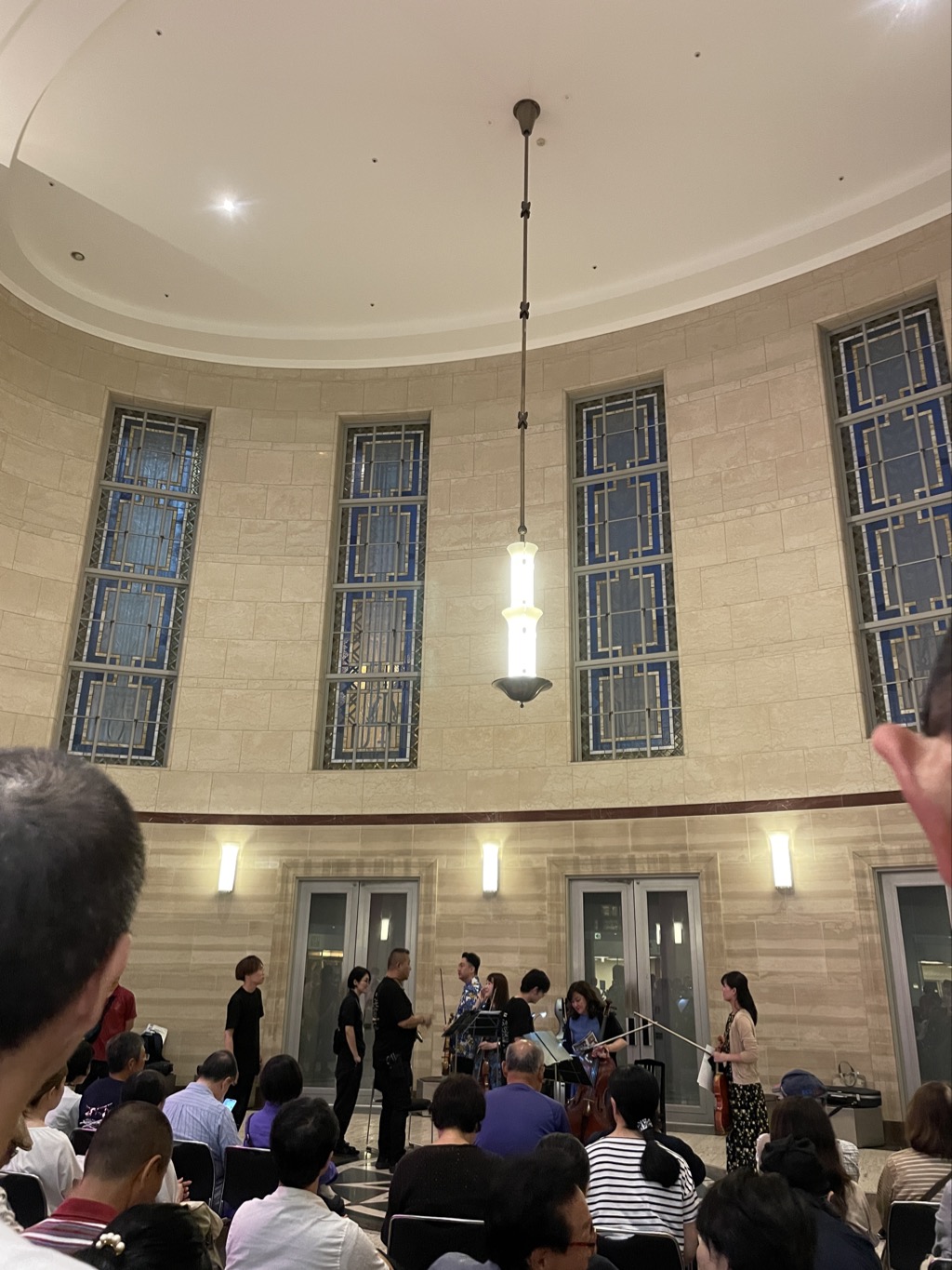 - 次第に人が集まりだし、3階までぎっしり人が並んでいました。幸いにも運良く、前の方に入ることが出来て、とっても間近に良い音色で癒やされました。
