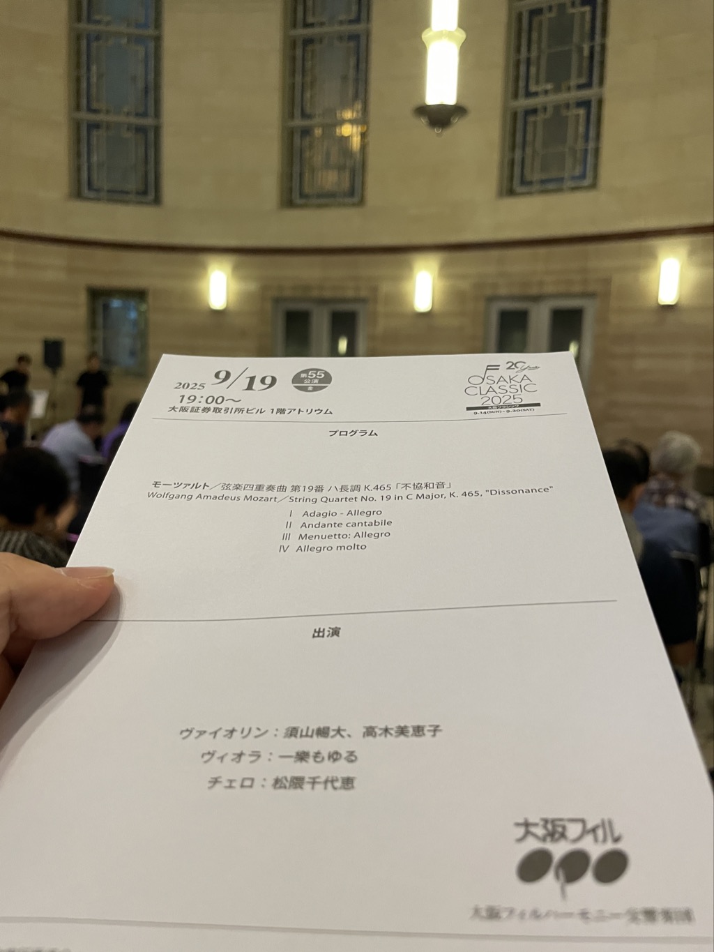 - 重い楽器の一人以外の3人はずっとたった状態で演奏されていて、そういえば小学校ではトランペットをひいていましたから、そちらの視点でも学びがあったように想います。