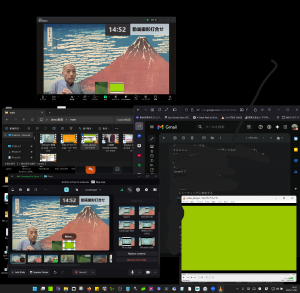 自身の姿を小さくして資料の前後にレイヤー移動させたり、まさにリアルタイムでのコンポジット(合成)作業をして