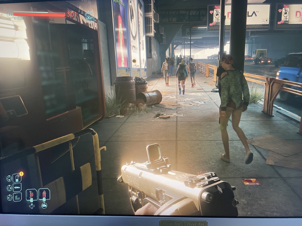 もちろんレイトレーシングを最高に設定して、美しさを存分に味わっていて、ゴーストオブツシマとはまた違う美麗グラフィック、妖しげでアメリカの夜のネオン街をバーチャル体験できてしまっています。