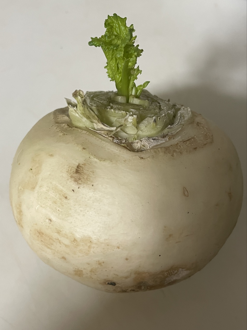 ふと、安くなっていた大根を買って、その上の菜っ葉を漬物にすべく、すべて刈り取ったはずなのに、土に入ってなく、キッチンにあり太陽もさほど浴びてないのに、青々とした芽が出ていてとても驚きました。