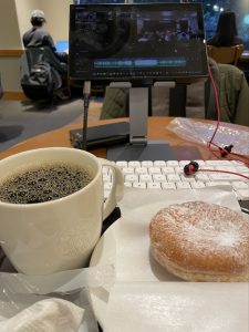 モバイルバッテリーと高性能なモバイルPC、そして良いキーボード、目の高さを維持するスタンド、1TB蓄えられる外付けSSDがあれば、即座に編集スタジオに変身します。
