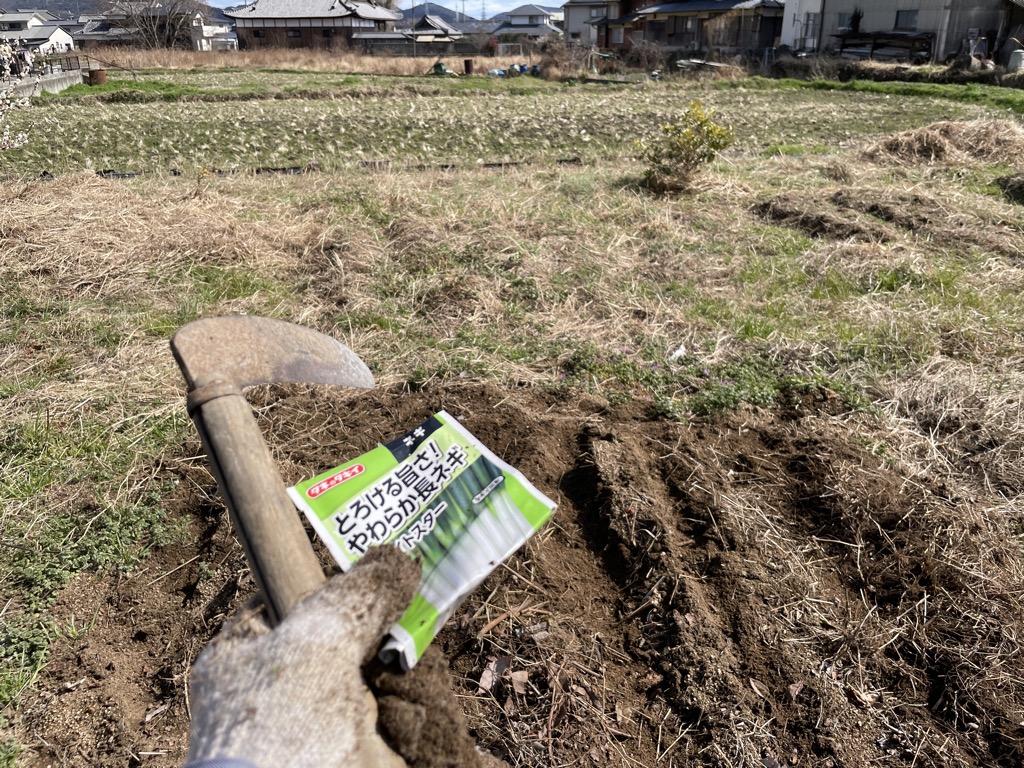 良い天気だったので、19時からの農業部会出席前に畑で種まき