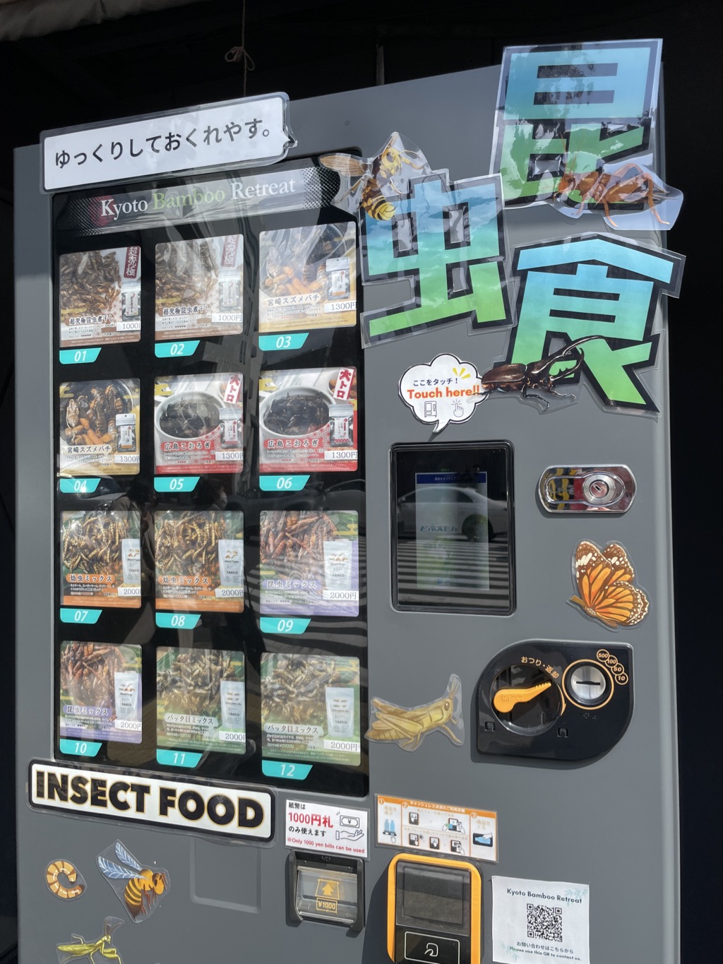 途中で二度見した 自動販売機は、コーヒーなどのドリンクにまみれて、昆虫食がバーンと表に出ていたので、たまげました。