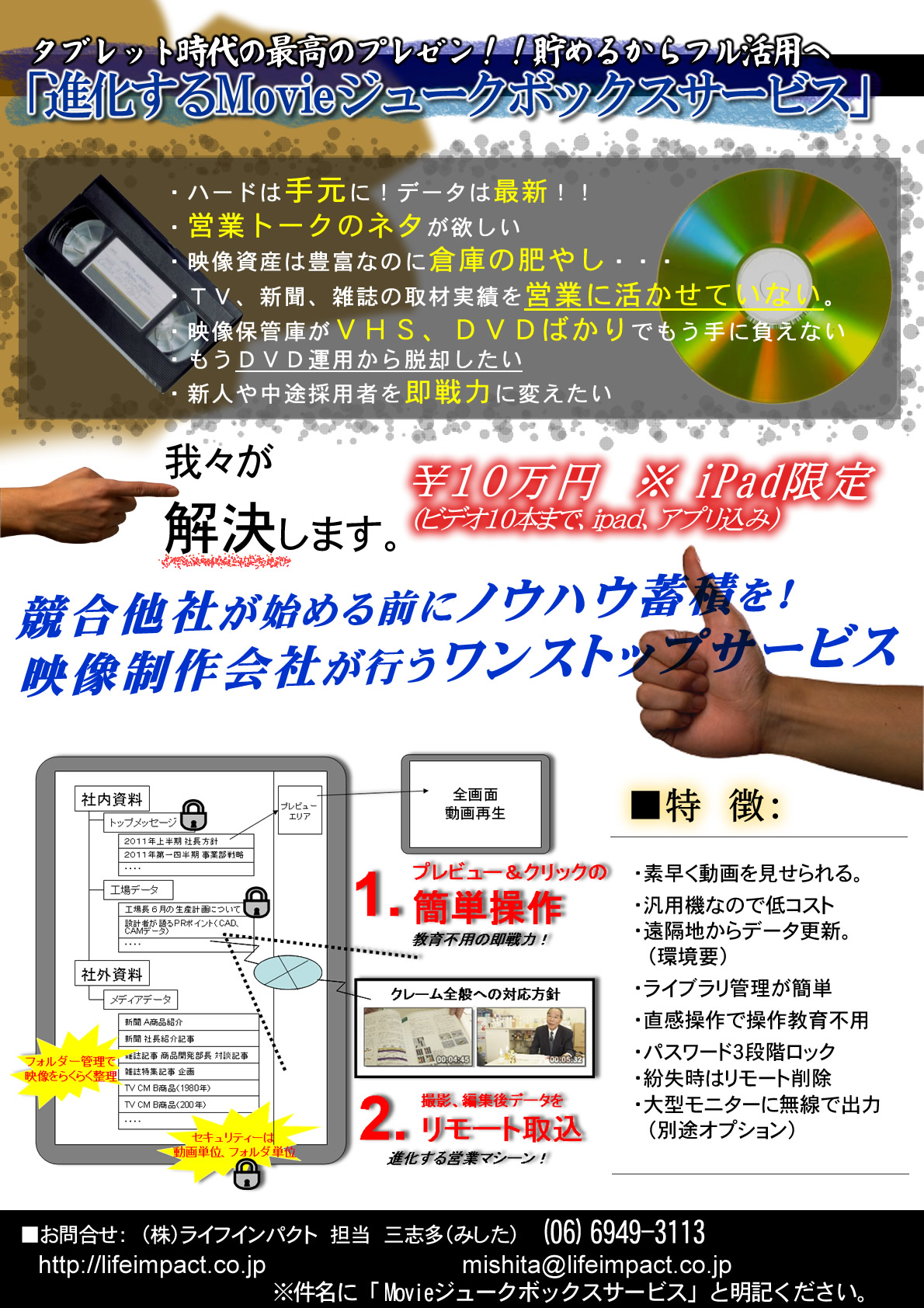 「進化するMovieジュークボックスサービス¥20万円~(10本、ハード、ソフト込み) ※ iPad限定サービス」