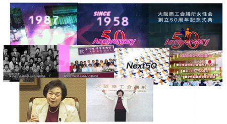 大阪商工会議所 女性会さんが50周年を迎えるということで、記念式典用に映像を制作させて頂きました。写真素材が段ボール3箱以上というすざましい情報量と、紛失の恐怖と戦いながら、単純な写真スライドで退屈しないように、CGで動きを付けました。さらに、尾崎会長のとてもチャーミングなメッセージを最後に頂くことで、エンディングに繋がりやすくなったのではないかと思います。
